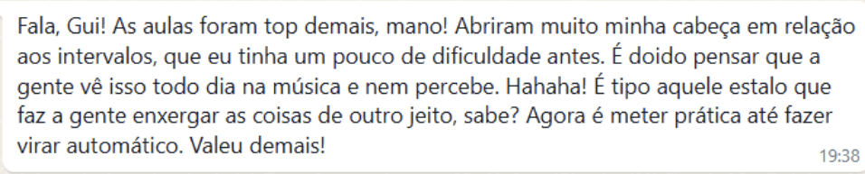 Gravação das 4 aulas ao vivo do treinamento “INTERVALOS: O PILAR DA MÚSICA”