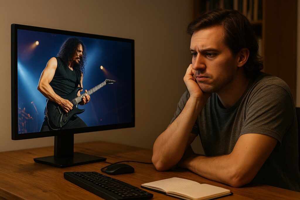 E detalhe: a maioria dos guitarristas já gastou muito mais do que imagina com licks prontos, packs de timbre, upgrades e cursos aleatórios, e continua sem evoluir porque não existe estrutura.