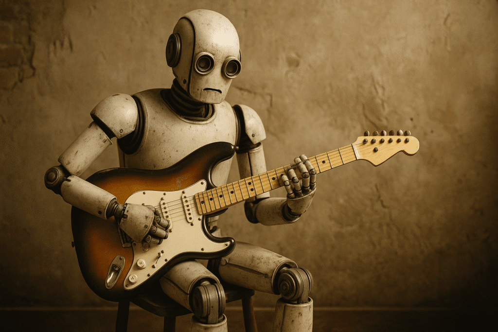 Você aprende a transformar referências dos seus ídolos em ideias suas, criar suas frases com pentatonica, escala maior e arpejos, conectar ideias e fazer tudo soar como música de verdade.